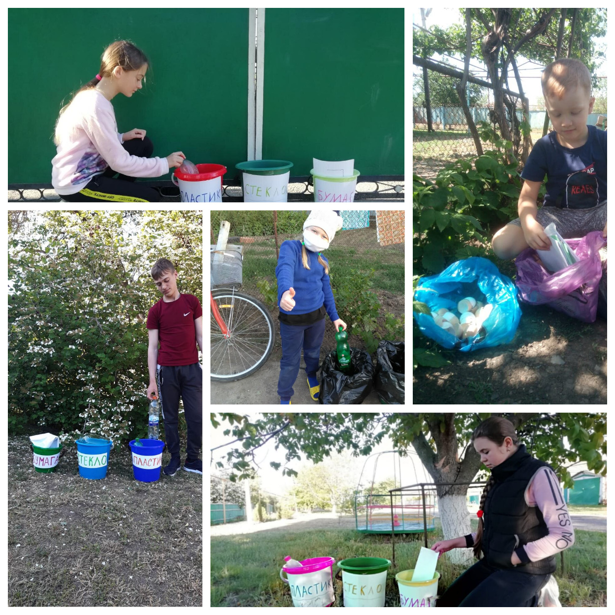 Ребята фасовали мусор по контейнерам: «стекло», «пластик», «не сортируемые отходы», «бумага». Представили различные поделки из бытовых отходов, которые сделали своими руками или совместно с членами семьи.