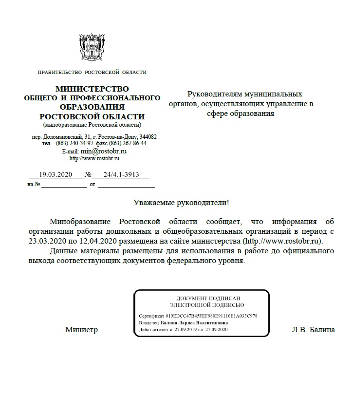 Уважаемые родители! В настоящее время дошкольные образовательные, общеобразовательные организации, организации среднего профессионального и дополнительного образования Ростовской области работают в…