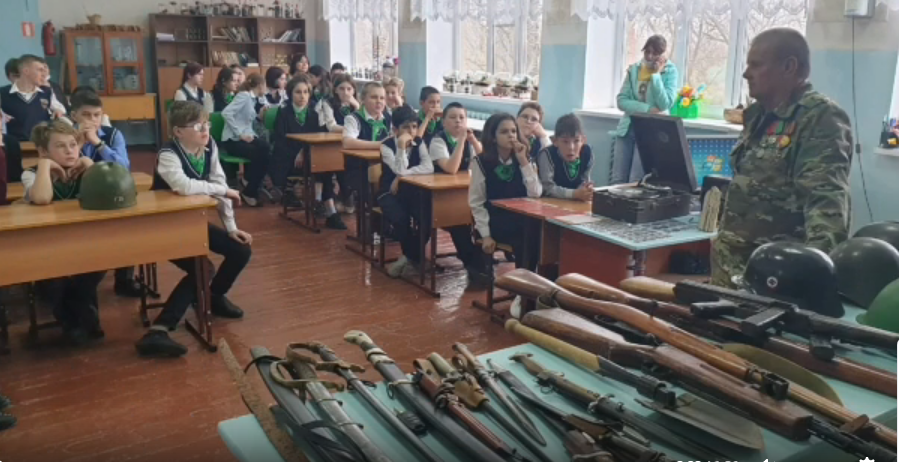 15 апреля в нашей школе состоялась встреча с членом поискового отряда "Южный рубеж" Михеевым Анатолием Алексеевичем. Он живёт в посёлке Орловский и уже много лет занимается поисковой работой. Анатолий Алексеевич привёз с собой интересные экспонаты, обнаруженные им во время поиска. Это сабли и разные виды стрелкового оружия, солдатские каски Первой мировой войны и Великой Отечественной войны. Очень интересны коллекции наград, монет и многое другое. Анатолий Алексеевич сопровождал показ экспонатов ярким рассказом.